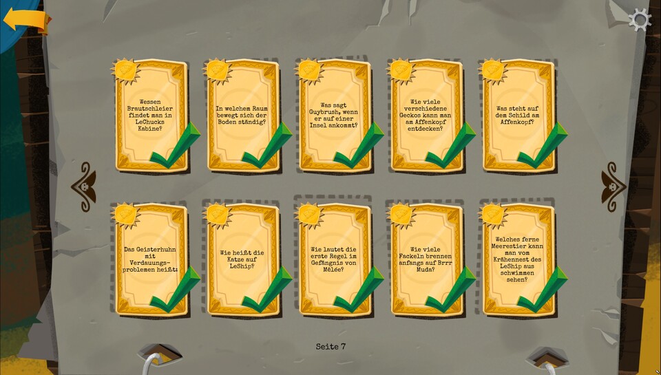 | S7 | 3 | Was sagt Guybrush, wenn er auf einer Insel ankommt? | Nichts |