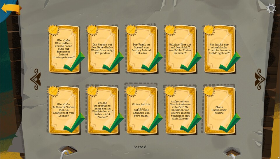 | S9 | 2 | Wo befindet sich Cogg Island? | B.6 Achtung: Die richtige Antwort wird erst nach dem Abschluss der Story freigeschaltet und ist ein Easteregg! (Falsche Antworten: Irgendwo,Legende,Mythos,Vergessen) |