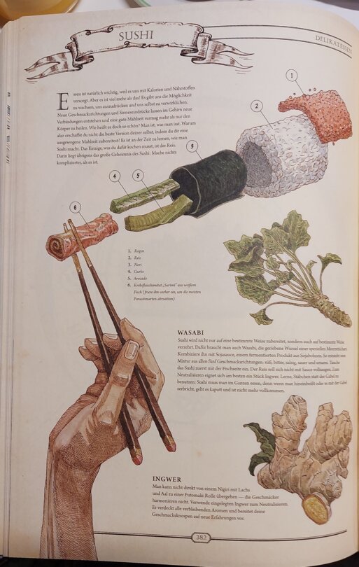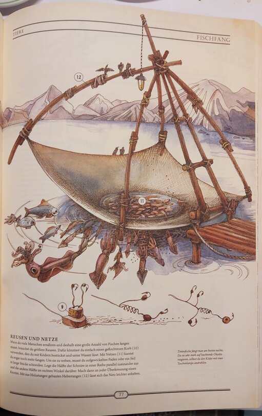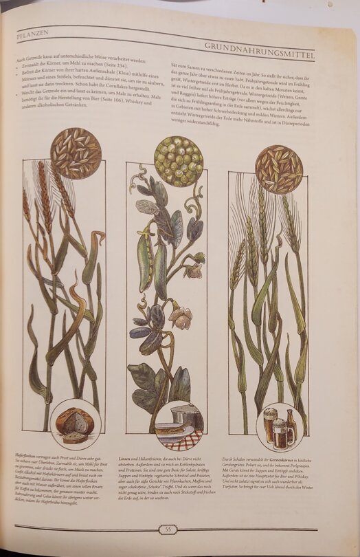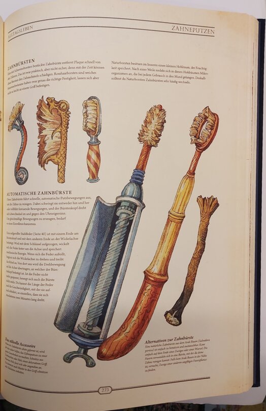 Für mich sticht derweil vor allem die Bandbreite heraus, die die Inhalte aufspannen. Ob Blinddarmentfernung ohne Hightech-Medizin, Grundnahrungsmittel, die Herstellung von Seilen aus Fasern oder verschiedenartige Knoten, ich staune mich voran und genieße meine Zeit mit dem Werk.