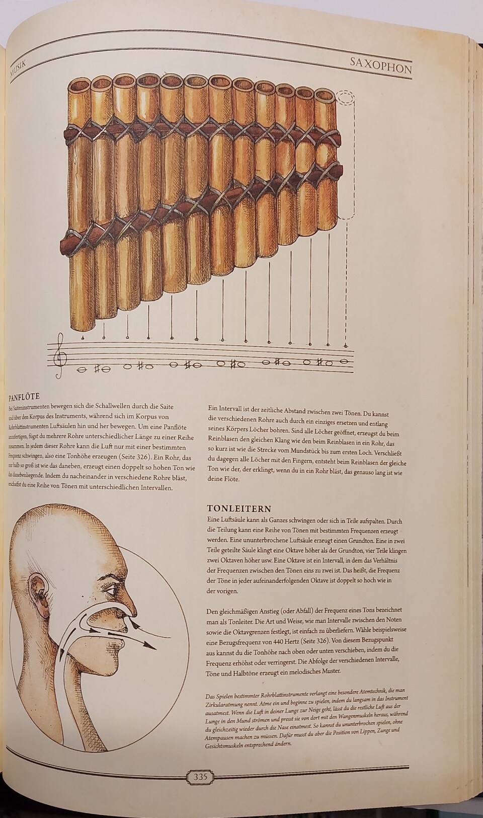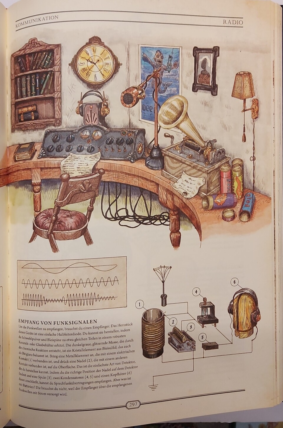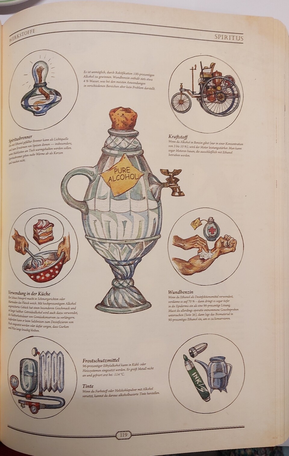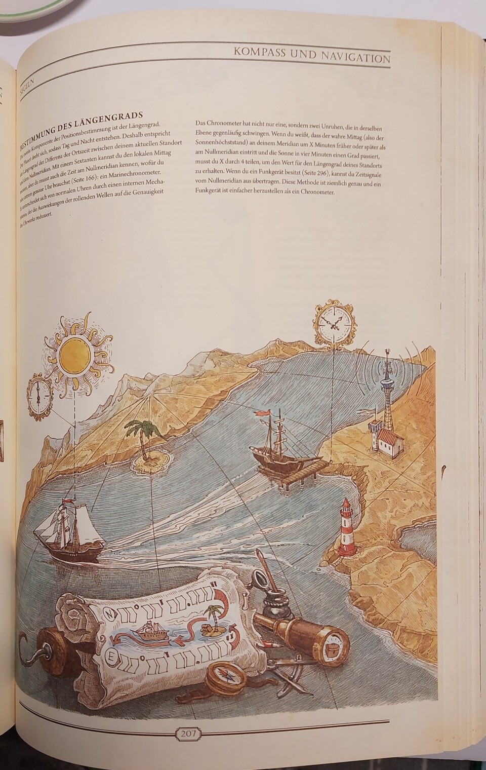 Warten hier goldene Buchstaben auf mit Stoff durchwebten Seiten auf mich? Beim Aufschlagen zerschlägt sich dieser, zugegeben dekadente, Gedanke rasch, doch es bleibt ein Gefühl, hier mehr als ein bloßes Lexikon in Händen zu halten. Die Themenpalette erweist sich erwartungsgemäß als breit: angefangen von grundlegendem Überleben und Naturmedizin, über erste Werkstoffe, Werkzeuge, Lebensmittel und Vehikel bis hin zu Dampfmaschinen, Ölraffination, Spiele, Musik oder Meditation.