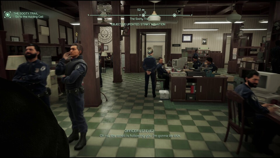 Springen steht als tonnenschwerer Superpolizist außer Frage, dafür gibt's später einen Dash zur schnellen Distanzüberbrückung im Kampf und joggen kann Alex Murphy ebenfalls. Von den Soundeffekten über die optionale Scan-Anzeige im Kampf: Alles fühlt sich nach der Vorlage an. Lediglich der Soundtrack kam mir in der Demo-Version noch ein bisschen zu kurz.