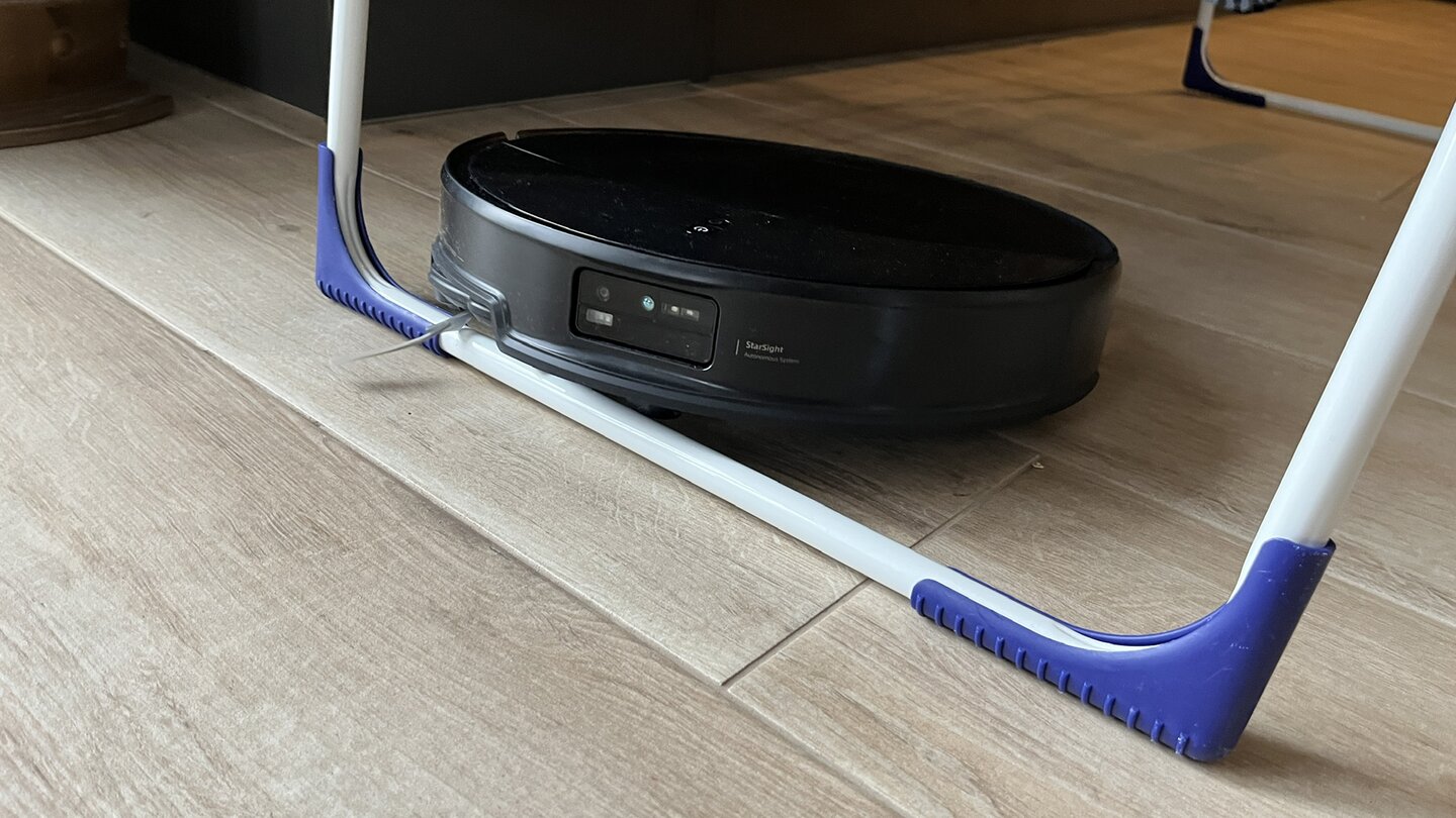 Aber Achtung: Unter meinem TV-Schrank blieb er an den Metallstreben der Unterkonstruktion hängen. Glücklicherweise lässt sich in der App konfigurieren, wie mutig