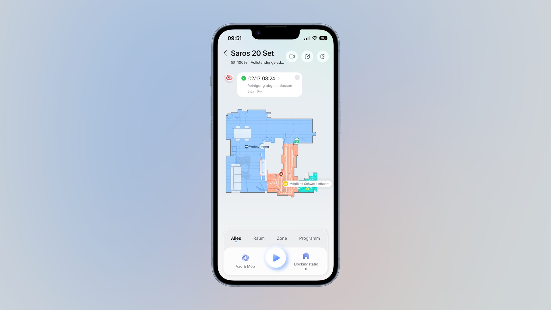 Wie nah soll der Saros 20 an Objekte heranfahren? Wie soll er mit Kabeln umgehen? Soll er sich unter niedrige Möbel trauen? Hier lässt sich für jeden eine Balance zwischen Sicherheit und Gründlichkeit finden.