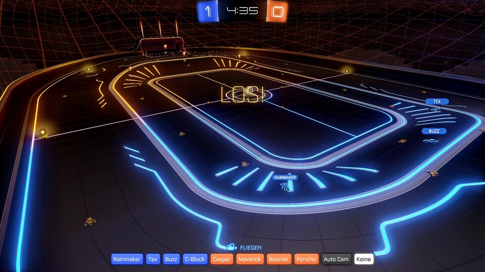 Tobi und Mirco haben den neuen 2-vs-2-Modus direkt ausprobiert und in der frischen Basketball-Arena ein paar Körbe »geschossen«. Lustig: Beim Anstoß fliegt der Ball in die Luft, sodass alle Spieler sofort nach oben springen. Generell ist es enorm wichtig, sein Fahrzeug zu beherrschen, denn Luftsprünge und -schüsse sind der Schlüssel zum Sieg.