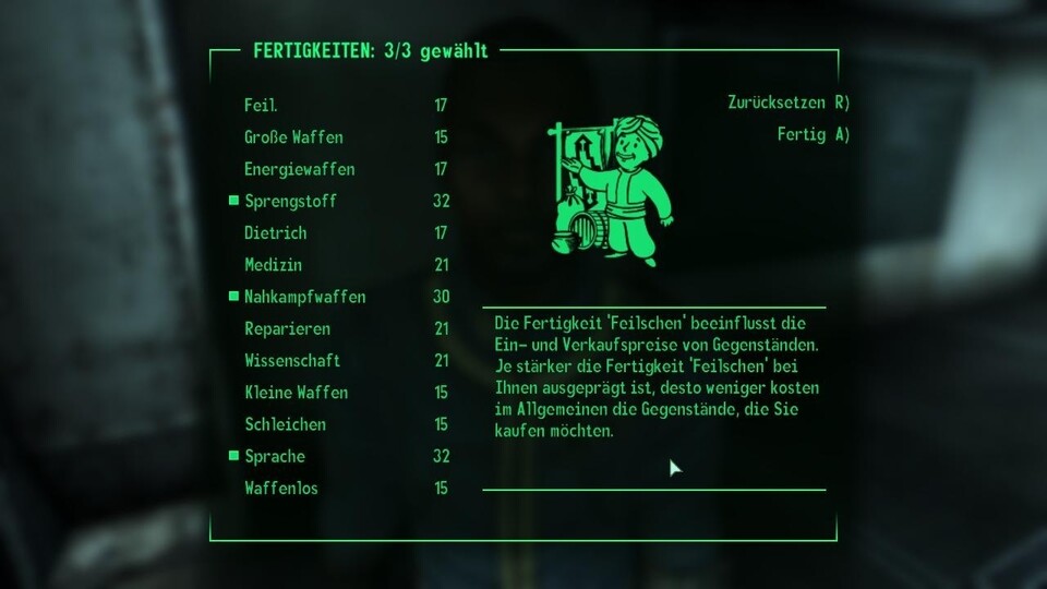 Bei der Charakterentwicklung verbindet Bethesda bewährte Methoden mit der radikalen Abschaffung vorgefertigter Charakterklassen. Jeder Charakter startet zu Beginn mit derselben Palette an erlernbaren Fähigkeiten. Erfahrung ernten wir dann, ähnlich wie in The Elder Scrolls 3: Morrowind, für einzelne Talernte, die von unserer Spielweise abhängig sind. Egal ob brachiale Nahkampfaction, gezielte Schüsse mit Pfeil und Bogen oder der Einsatz von Magie – je öfter wir eine bestimmte Fähigkeit einsetzen, desto schneller erlernen wir ihre nächste Stufe. Im Umkehrschluss benötigen Spieler, die häufig ihre Spielweise ändern länger für einen Stufenaufstieg. Wie in Fallout 3entscheiden wir uns bei jedem gewonnenen Level für bestimmte »Perks«, also passive Boni auf unsere Charaktereigenschaften.