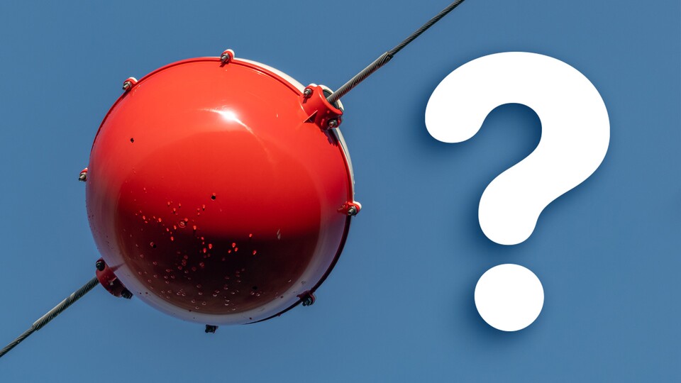erklärt euch, welchen Zweck die großen roten Kugeln erfüllen, die ihr teilweise an den Kabeln von Hochspannungsleitungen seht: