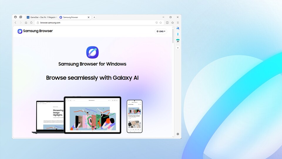 Samsung setzt bei dem Windows-Browser auf die gleiche Technologie, die auch Google Chrome, Microsoft Edge und viele andere Browser verwenden. Damit bietet er die gleiche Kompatibilität, Erweiterungen und Leistung wie die etablierten Webbrowser.