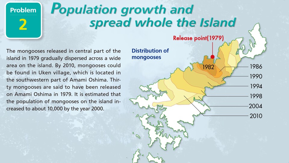 • Das zweite Problem war, dass die Mungos statt Jagd auf Schlangen zu machen unter anderem das seltene Amami-Kaninchen auf ihren Speiseplan gesetzt haben.