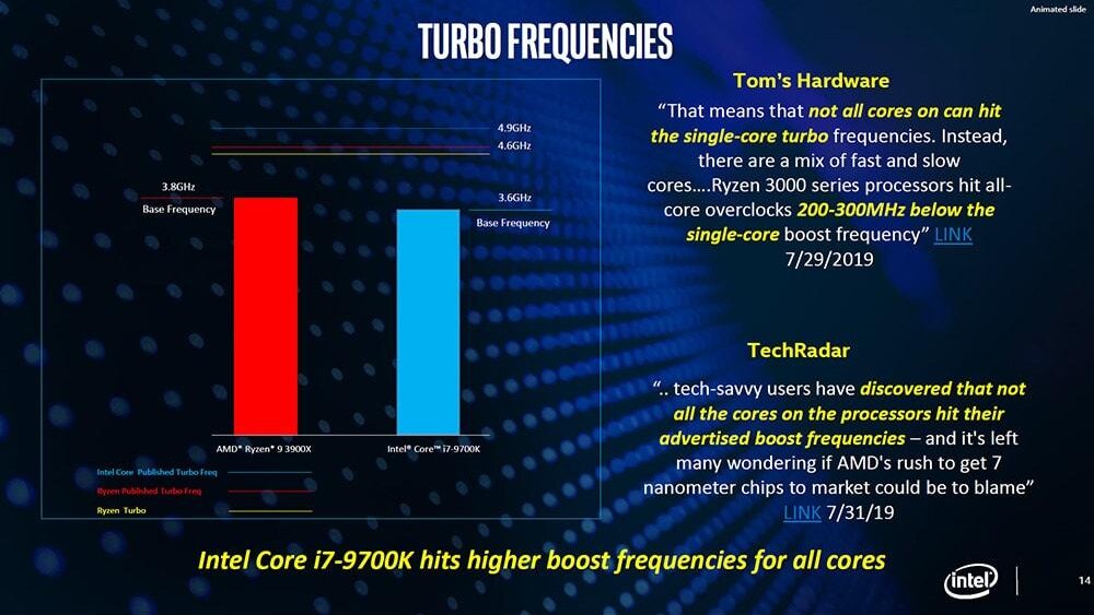 Zwar kann man AMDs Angaben durchaus kritisch gegenüberstehen, allerdings wird der Vergleich von Intel durch ein ergänzendes Zitat von Tom's Hardware nicht minder fragwürdig.