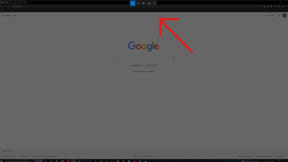 Sobald ihr das Tool mit einer dieser Methoden gestartet habt, wird euer Bildschirm erst einmal etwas abgedunkelt. Anschließend erscheint am oberen Rand eine Toolbar, die euch verschiedene Optionen bietet. Darunter sind: