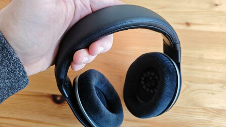 Viele ergonomische Freiheiten habt ihr übrigens nicht. Die Muscheln lassen sich nur dezent drehen. Dafür hat der Bügel relativ viel Spiel, sodass der Kopfhörer sowohl auf kleine Köpfe als auch große passt.