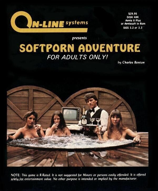 Softporn Adventure war das einzige rein textbasierte Spiel, das Sierra jemals veröffentlichte. Laut Ken Williams wurden 25.000 Kopien davon verkauft, eine stolze Zahl, wenn man bedenkt, dass es damals nur schätzungsweise 100.000 Apple II-Computer gab. Das Cover, das drei champagnerschlürfende Frauen und ihren Butler im Whirlpool zeigt, wurde im Haus der Williams aufgenommen. Und die Dame ganz rechts ist niemand anderes als Entwickler-Legende Roberta Williams selbst