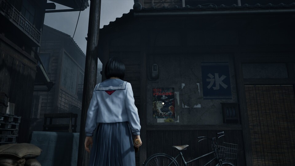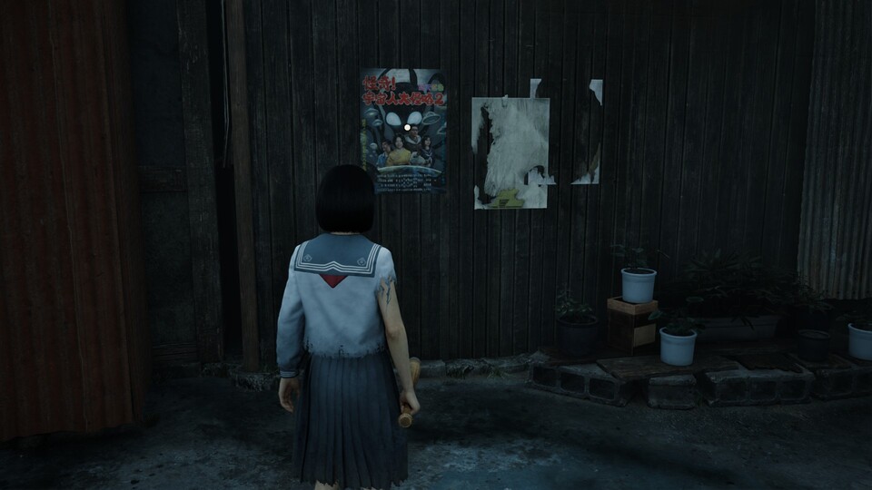 Das letzte Filmplakat ist vermutlich das erste, über das ihr beim Spielen gestolpert seid. Hierfür müsst ihr jetzt ein bisschen zurück rennen zu der Stelle, an der ihr gerade noch die Zwischensequenz mit Shu und Rinko erlebt habt. Rennt wieder durch den engen Gang, aus dem ihr gekommen seid.