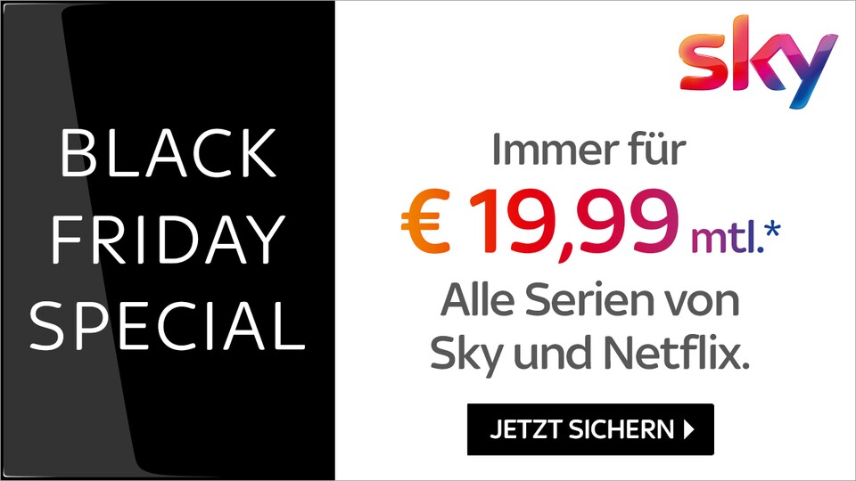 Sky macht den Traum aller Serienjunkies wahr: Zahlt ein Abo und bekommt die volle Ladung Serien und Blockbuster mit Sky und Netflix. Seht alle Sky Eigenproduktionen und Netflix Originale in HD. Erlebt die neuesten Staffeln von Game of Thrones und starke deutsche Serien wie Babylon Berlin oder Das Boot - für monatlich 19,99 und zwar dauerhaft. Keine steigenden Kosten mehr, ihr zahlt immer denselben Preis und bekommt das Beste an Drama, Comedy, Action und Fantasy, das es derzeit auf dem Serienmarkt gibt.