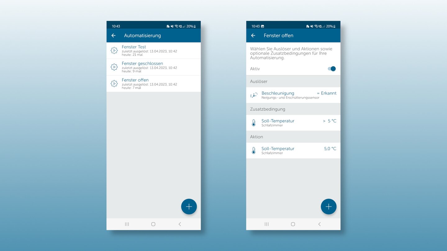 Bleibt noch zu klären, wie die Heizung auf den erschütterten Sensor reagiert. Dafür erstelle ich in der Homematic-IP-App zwei neue Automatisierungen.