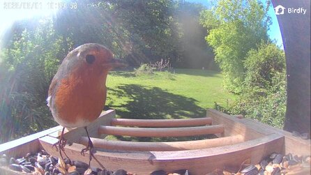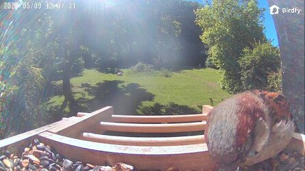 Über die integrierte Gegensprech-Anlage in der Kamera fragte ich ihn, ob es ihm sonst ganz gut geht. Er flüchtete, allerdings nur für fünf Minuten. Danach kehrte er zurück und führte seine Nahrungsaufnahme fort. Inzwischen habe ich ihn akzeptiert und ihn Rocket getauft. Allerdings fülle ich das Häuschen täglich weniger voll, damit es zum Abend meist leer gefuttert ist.