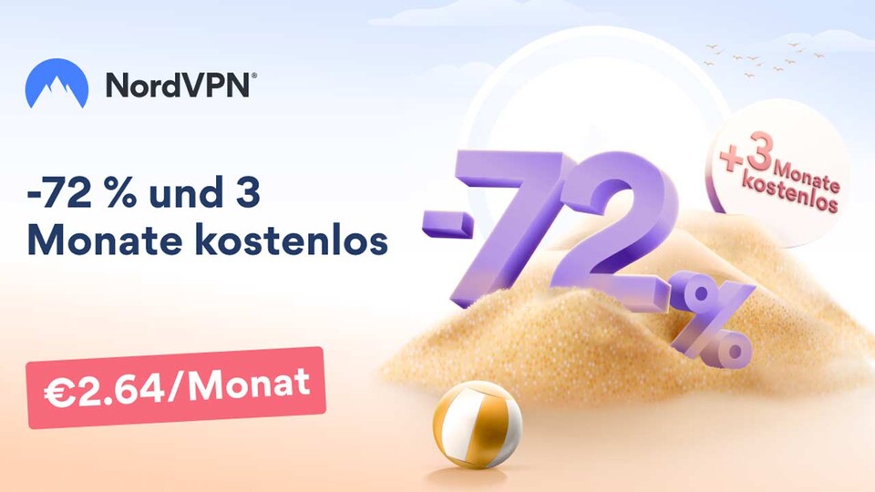 So gut ist das Angebot: Entschließt ihr euch für das 2-Jahres-Abonnement von NordVPN erhaltet ihr dieses mit 72 Prozent Rabatt und damit für nur 2,64 Euro pro Monat. Darüber hinaus gibt es drei Monate gratis dazu.