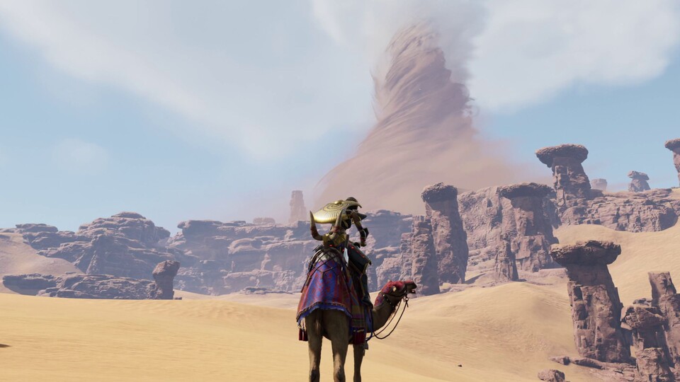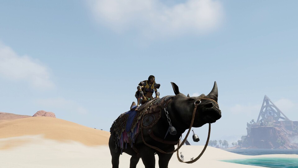 Als Schildträger können wir in der Wüste sogar auf unseren Schilden über die Dünen surfen. Und trotz Flugmaske und -Schiff wächst natürlich auch unser persönlicher Zoo weiter an. Drei der neuen Tierarten können wir sogar reiten: