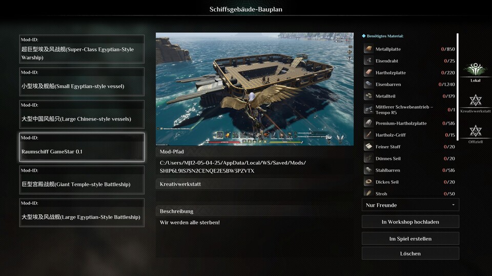 Und wenn euch der Entwurf einer solch durchorganisierten fliegenden Unterkunft zu mühselig ist, dann greift ihr einfach auf das neue Blaupausen-System zurück. Damit könnt ihr nämlich nicht nur eure eigenen Kreationen abspeichern und mit Freunden teilen, ihr könnt auch einfach im Steam-Workshop die Meisterwerke anderer Spieler bestaunen, herunterladen und im Handumdrehen in eure eigene Welt platzieren. Zum Start werden aber auch ein paar vorgefertigte Designs der Entwickler zur Auswahl stehen.