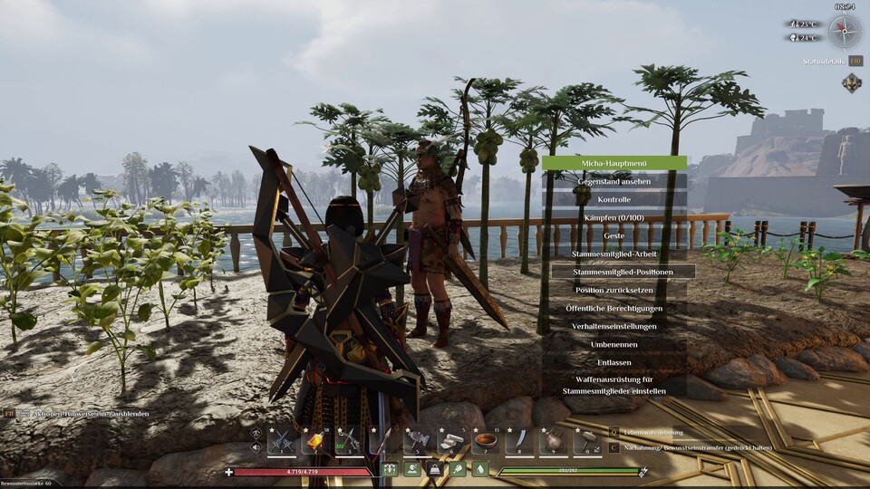 - Der klassische Überlebensmodus fordert euch hingegen in allen Bereichen. Ihr müsst essen, trinken und schlafen, feindliche Basen stürmen und eure eigene verteidigen. Durch Crafting erlangt ihr bessere Ausrüstung. Das ist im Prinzip der gleiche Spielmodus wie im Early-Access, aber für Version 1.0 wurde der Levelfortschritt vom Mid- ins Endgame überarbeitet und beschleunigt.