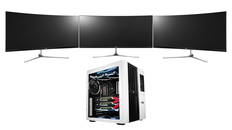 Spielen in 10K - Extrem-PC mit drei GTX 980 und drei Ultrawide-Curved-TFTs ausprobiert