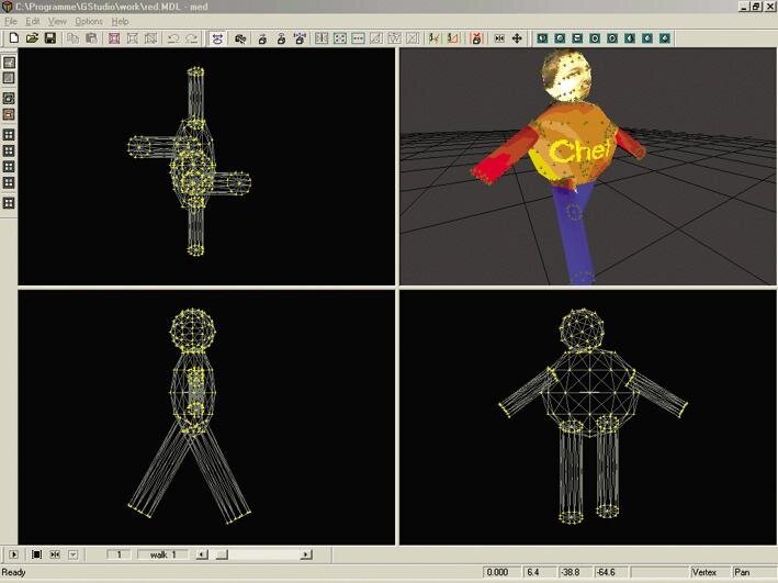 Heute wird es ernst: Ich werfe das 3D Game Studio zum ersten Mal an. Die Installation richtet zwei Programme auf dem Rechner ein. Im Level-Editor wird die Architektur meines Spiels entstehen. Figuren und bewegliche Objekte muss ich zuvor im Model-Editor entwerfen und animieren. Und dann ist da noch die Script-Sprache WDL, die alle Einzelteile zusammenfügt und dem Spiel Leben einhaucht. Für den Moment konzentriere ich mich auf den Level-Editor - die Redaktionsbüros wollen modelliert werden!