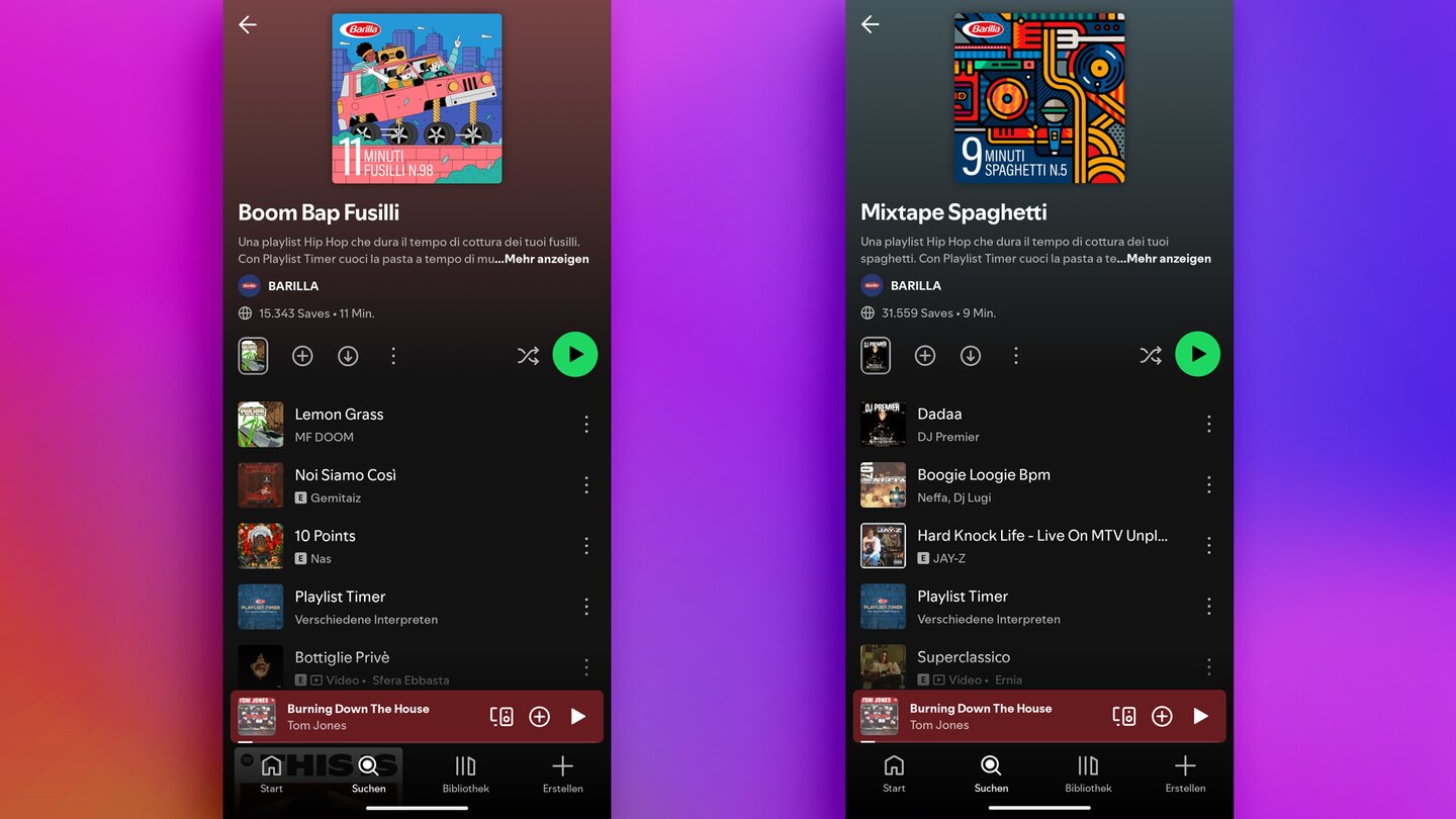 Die Nudelmarke Barilla hat auf Spotify Playlisten, die nach einigen ihrer Nudelsorten benannt sind. Die heißen dann etwa: