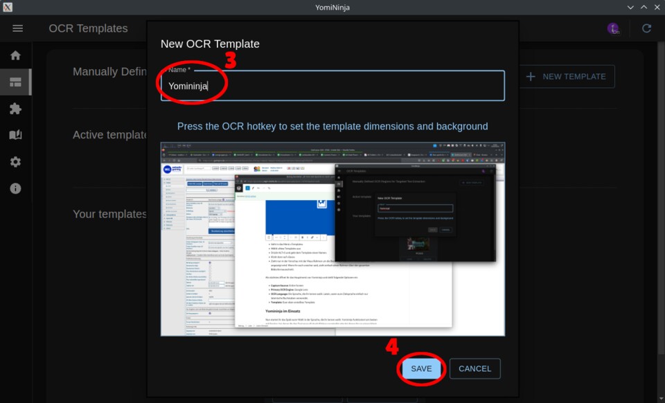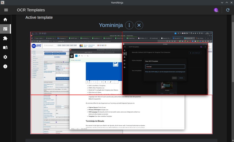(3) - Zieht nun in der Vorschau mit der Maus Rahmen um die Bereiche, in denen ihr erwartet, dass Text angezeigt wird. Wenn ihr euch unsicher seid, zieht einfach einen Rahmen über den gesamten Bildschirmausschnitt.