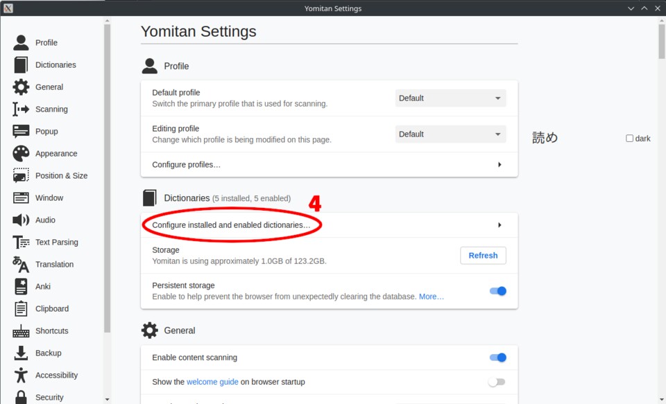 - Klickt hier bei dem Eintrag Yomitan auf