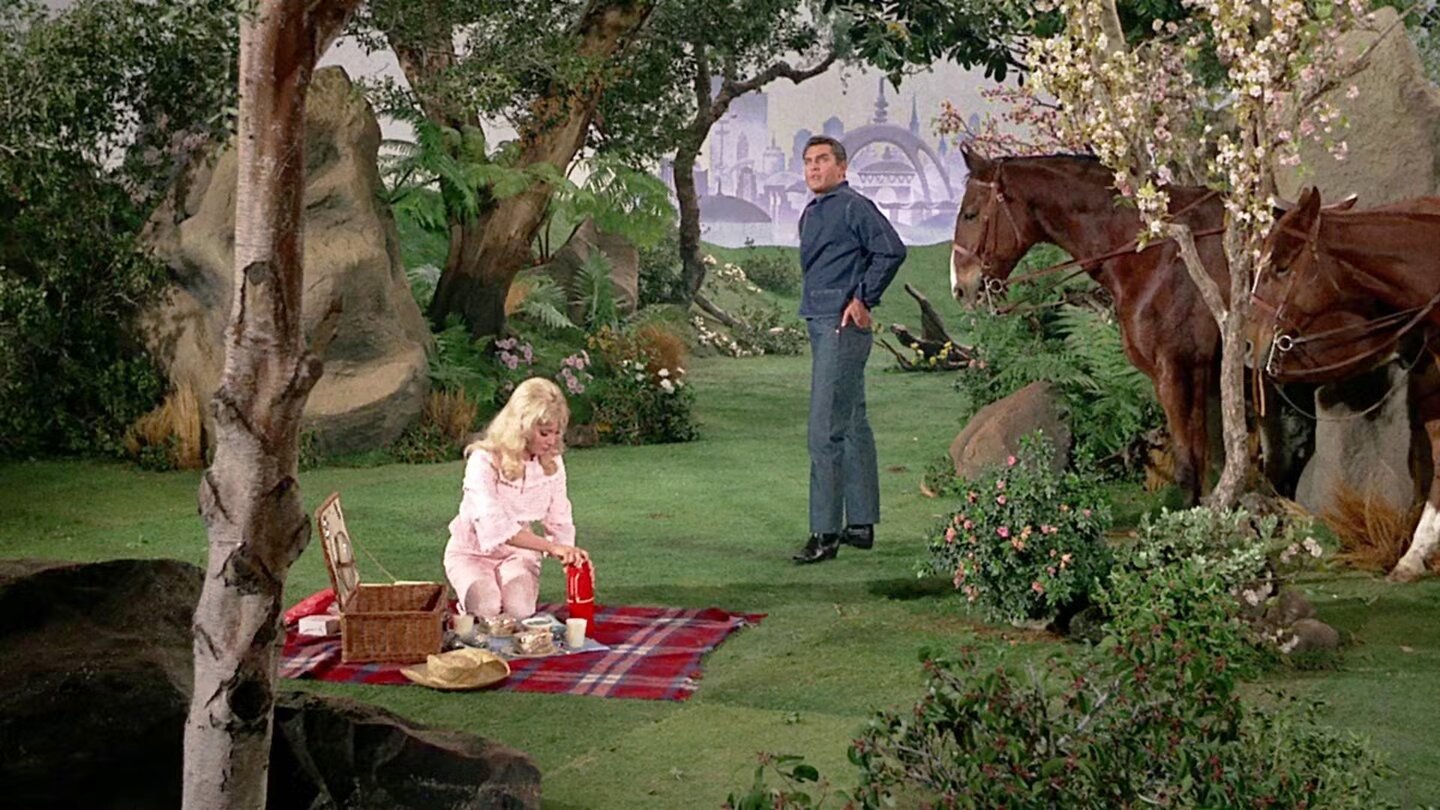 Der Pike von 1965 (Jeffrey Hunter) hat eine Ranch in Kalifornien, die im Film auch in einer durch Aliens verursachten Illusion zum Thema wird - inklusive Stiefeln, Jeans-Look und Pferd.