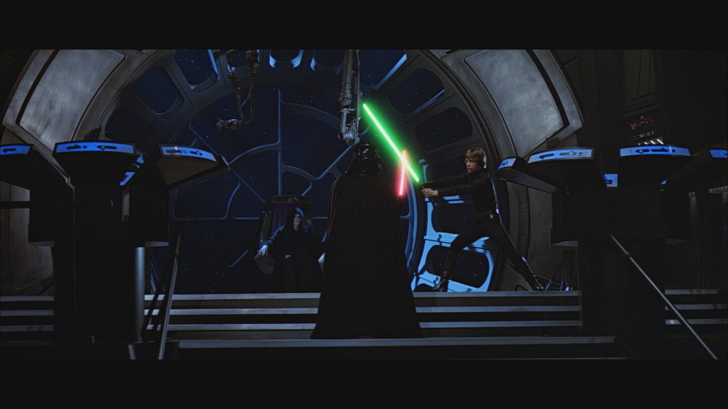 , gutes Stichwort: Was danach passiert wäre, geht auf keine Bantahaut! Als Luke kurze Zeit später auf Endor ein paar Tränen verdrückt, wird es kitschiger als in jeder Telenovela. Wer allergisch gegen Happy Ends ist, muss jetzt diesen Tab schließen.