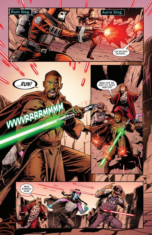 Es stellt sich heraus, dass Mira sich aufgrund ihrer Entdeckung bereits im Visier von Kopfgeldjägern befindet und hier tritt nicht nur Rum Sleg, sondern auch Aurra Sing auf den Plan.