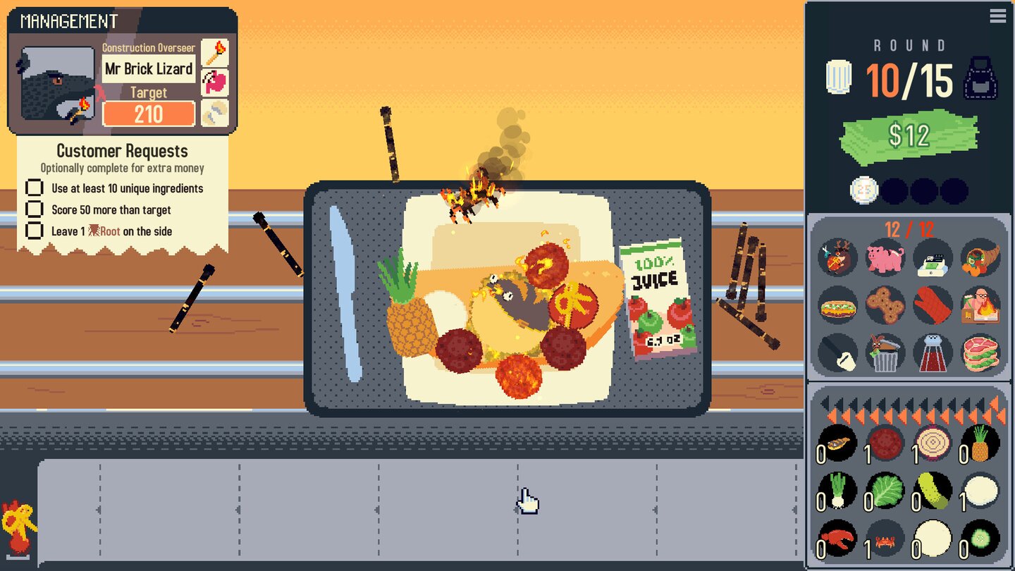 Ihr kombiniert klassische Lebensmittel mit absurden Zutaten wie Donuts oder Gewürzgurken. Jede Spielrunde konfrontiert euch mit neuen Gefahren und steigenden Punktehürden. Für die Bewältigung dieser Aufgaben greift ihr auf über 90 spezielle Helfer zurück.