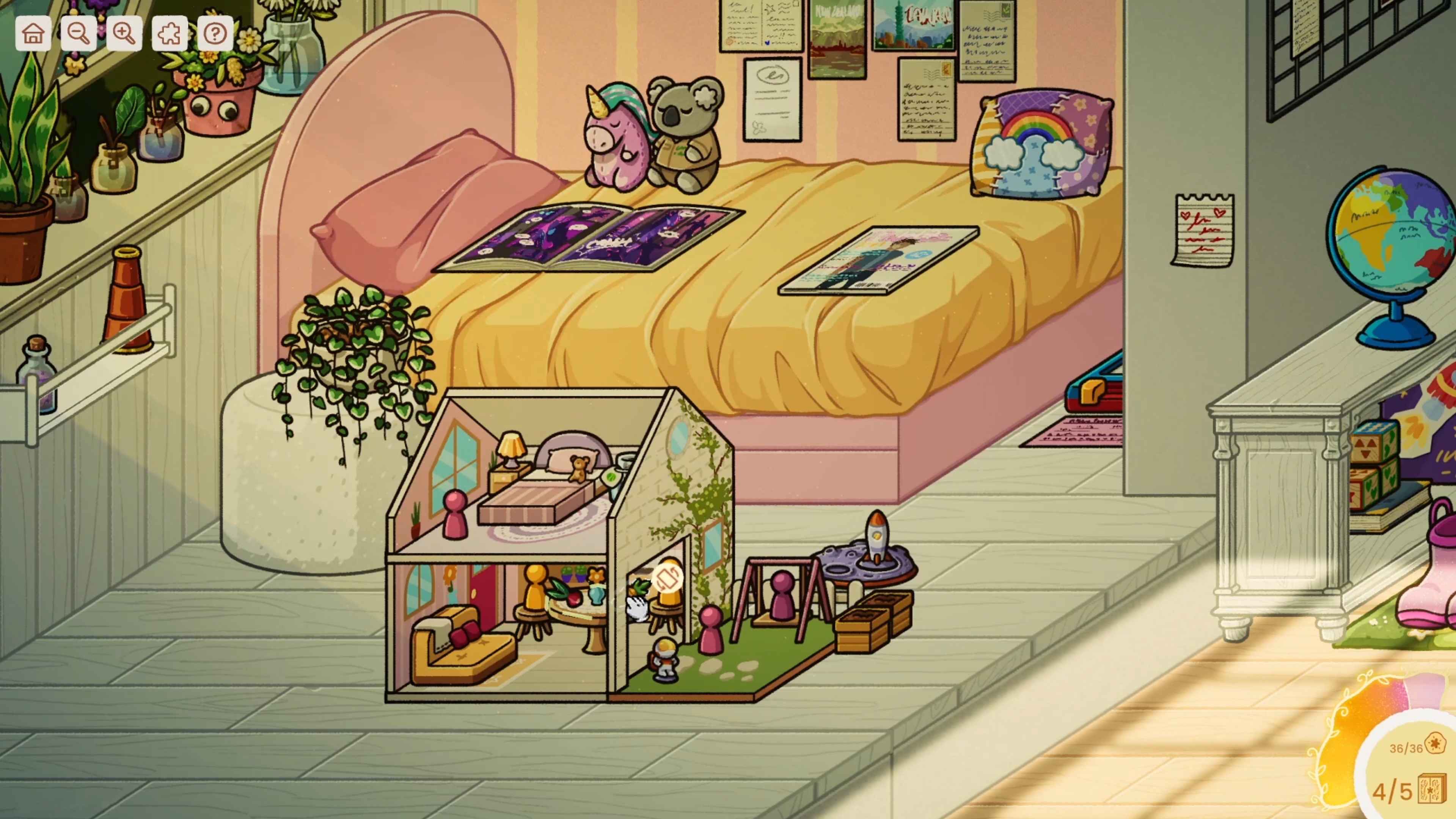 Abseits der Momentos gibt es in jedem Abschnitt noch kleinere optionale Rätsel zu lösen. Nanu? Ich sehe überall im Zimmer kleine Tierfiguren. Und dort liegen auch ein paar Weidezäune herum. Ich mache mir die Mühe und ordne die Spielsachen zu einem kleinen Bauernhof an. Rätsel gelöst