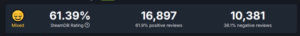 Inzwischen kommen auf rund 17.000 positive Stimmen über 10.000 Daumen nach unten. Damit steht der DLC mit einer Empfehlungsquote von 62 Prozent nur noch bei einem Score von »Ausgeglichen«.