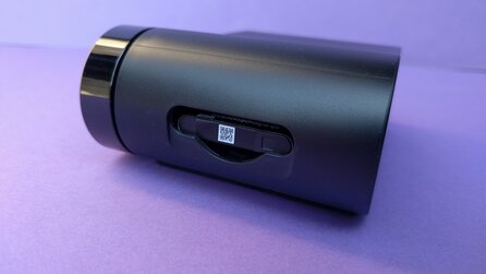 Die Basisstation hat auf der Front ein monochromes OLED-Display, auf dem sich verschiedene Anzeigen darstellen lassen. Daneben platziert finden wir ein Lautstärkerad, mit dem man auch durch die Menüs navigiert. Das eigentliche Gimmick der Basisstation aber ist ein Ladeslot an der Seite. Dort kann der zweite Akku nicht bloß verstaut, sondern eben auch geladen werden.