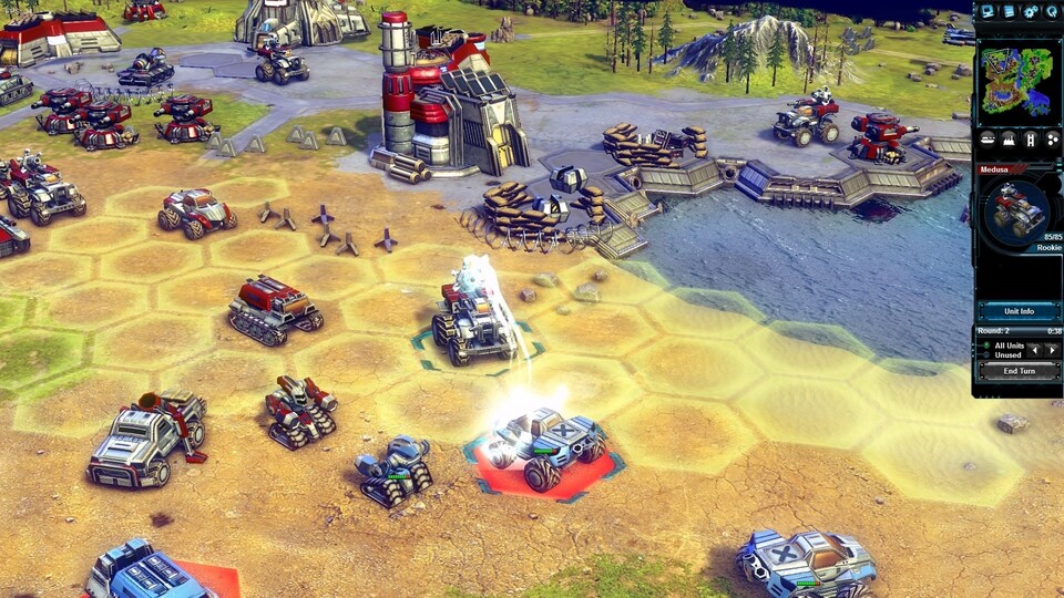 Battle Worlds: Kronos (2013) ist das Remake einer beliebten deutschen Strategiespiel-Reihe, die mit Battle Isle (1991) ihren Anfang nahm und der erste Erfolg für das deutsche Strategie-Studio Blue Byte war. In Battle Isle musste sich der Spieler auf einer Reihe von Karten-Levels gegen die KI oder (optional) gegen einen menschlichenMitspieler behaupten. Interessanterweise funktionierte das damals an einem Computer, da dank des innovativen Zugsystems beide Kontrahenten gleichzeitig etwas zu tun hatten: Während ein General seinen Einheiten Bewegungsbefehle übermittelte, gab der andere Angriffsorder aus - in der nächsten Runde war es umgekehrt. Nach jedem Rundenwechsel wurde das Ergebnis der Beschussphase angezeigt. Das konnte im Ernstfall dazu führen, dass Einheiten ihre Befehle gar nicht mehr befolgen konnten, wenn sie vorher komplett vernichtet wurden.