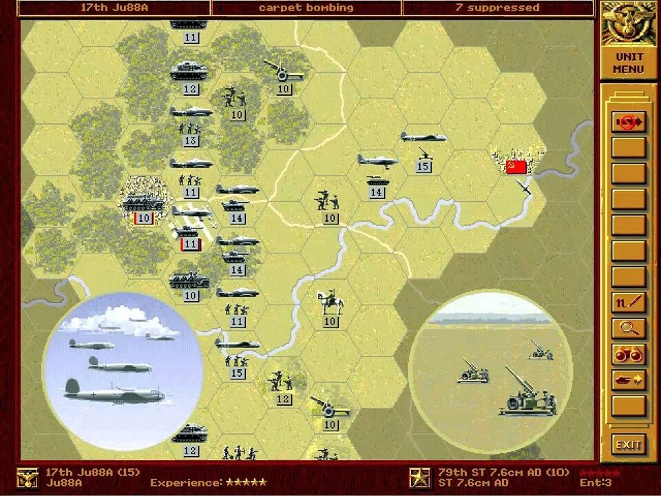 1994 erschuf SSI (Strategic Simulations Inc.) mit Panzer General die Urform für eine ganze Ahnengalerie von hexfeld-basierten Kriegssimulationen. Das Besondere an Panzer General war die Kombination der taktischen Operationsebene (welche Einheit greift welchen Gegner auf welchem Gelände aus welcher Richtung an) mit strategischen Entscheidungen: Auf den teils recht großen Karten der Operationsgebiete steht es dem Spieler völlig frei, wie er die Ziele - meist eine Anzahl zu erobernder oder zu verteidigender Städte - angeht. Hieraus ergibt sich auch der knackige Schwierigkeitsgrad, da das Zeitlimit für den Abschluss einer Mission niemals Trödelei erlaubt. Wer sich von gegnerischen Verteidigungsstellungen bremsen lässt, verliert unter Umständen die Mission.