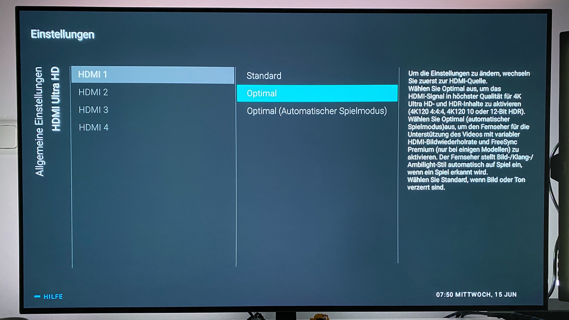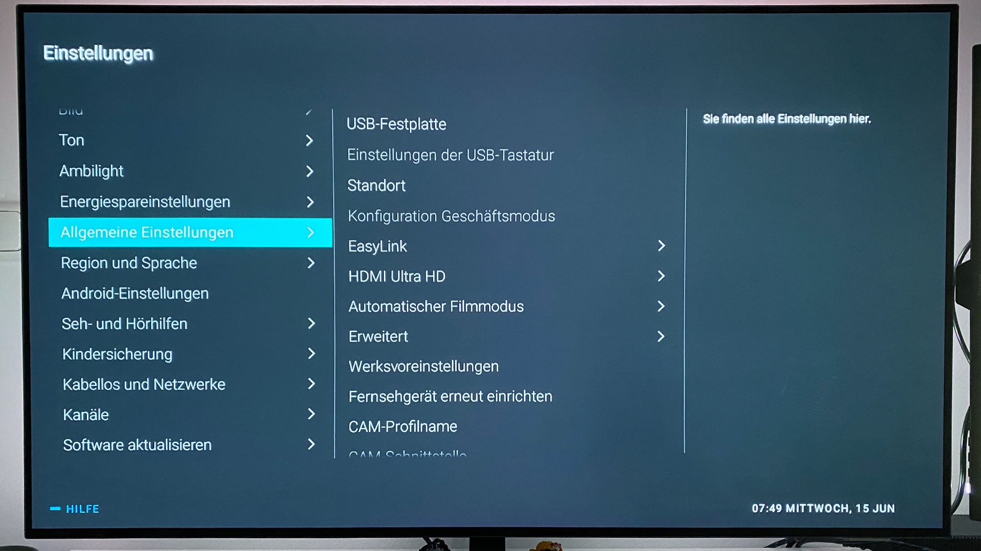 Hinweis: Diese Option sieht bei jedem Modell und jeder Marke anders aus. Im Falle meines Philips OLED807 zum Beispiel so: