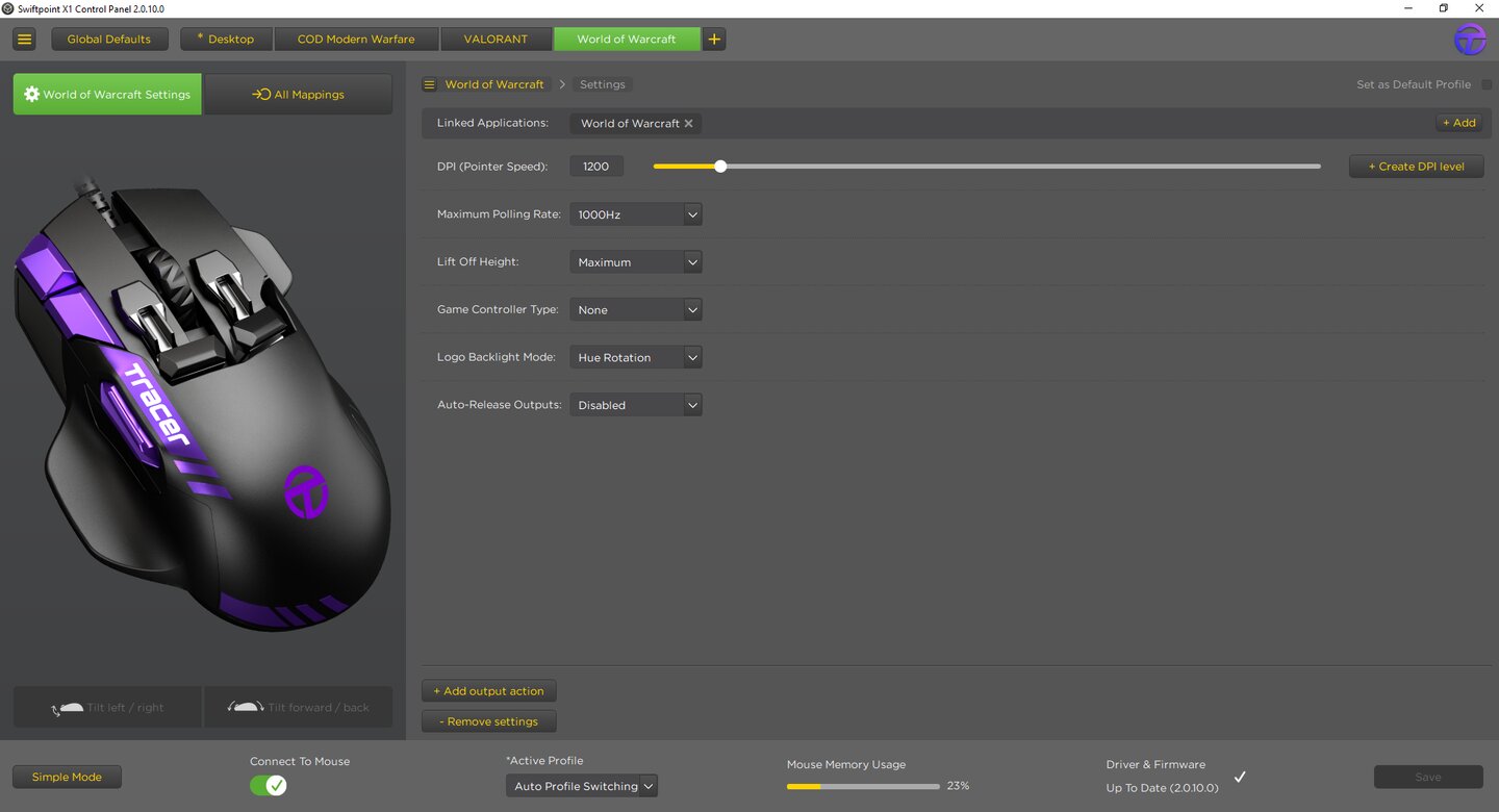 Zu oft sehe ich Maus-Software, die überladen und unnötig komplex ist. Mit dem Swiftpoint X1 Control Panel hingegen ist das Einrichten und Zuweisen verschiedener Funktionen einfach und intuitiv.