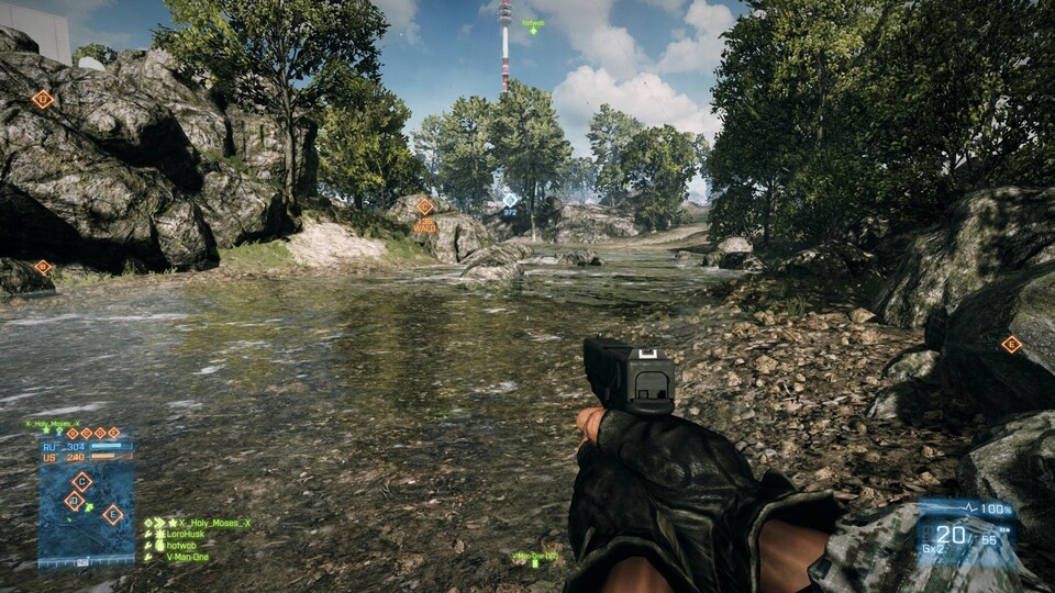 Tontechnisch verwendete DICE weiterhin High-Dynamic-Range-Audio, dennoch scheint es bei der Aufnahme und Produktion von allerlei Geräuschen Verbesserungen gegeben zu haben, da uns der Sound von Battlefield 3 im Vergleich zu BFBC2 noch eine ganze Ecke authentischer und beeindruckender vorkommt. In diversen »Behind-the-Scenes«-Videos zum Sounddesign von BF3 wird deutlich, wie viel Arbeit DICE in die Produktion einer authentischen, realitätsnahen Soundkulisse steckt. Zusammen mit seinem Nachfolger Battlefield 4 ist BF3 somit klare Soundreferenz auf dem Spiele-Markt.