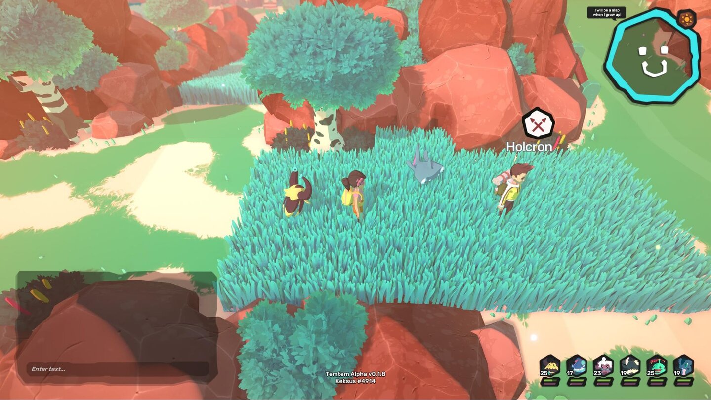 Die nächste Besonderheit, mit der sich Temtem abheben will, ist der MMORPG-Aspekt. In der Alpha konnten wir bereits andere Trainer und auch deren Temtems, die ihnen brav folgen, sehen. Dadurch wirkt die Spielwelt belebter als in Pokémon, großartige spielerische Auswirkungen hat das allerdings nicht.