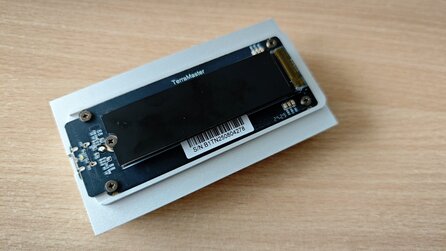 Bei Amazon ist das Terramaster-D1-SSD-Plus im Angebot. Es handelt sich dabei um ein Gehäuse für M.2.NVMe-2280-SSDs. Das sind die, die üblicherweise auch in Desktop-PCs verbaut sind. Bei diesem Modell ist also noch kein Speicher inkludiert, wie es etwa bei »fertigen« externen SSDs der Fall ist. Üblicherweise kostet das Gehäuse 120 Euro und aktuell ist es für 84 Euro erhältlich.