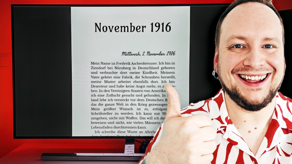 Und wenn ich mir das so anschaue, kann ich dem Mann absolut nachfühlen. Gerade als Autor recherchiert man überall und nirgends, man hat Notizen offen, das Schreibprogramm und Musik – doch ich mache es anders. Anstatt sechs Monitoren nutze ich einen riesigen.