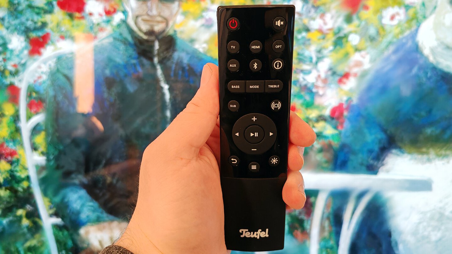 - Die Fernbedienung könnte hochwertiger sein. Es mag nur eine Kleinigkeit sein, aber im Vergleich zu anderen Teufel-Produkten (etwa dem früheren Cinedeck) ist das Kunststoffgehäuse ein Downgrade. Da hat die der Sharp Q HT-SBW55121 meiner Hand mehr geschmeichelt.