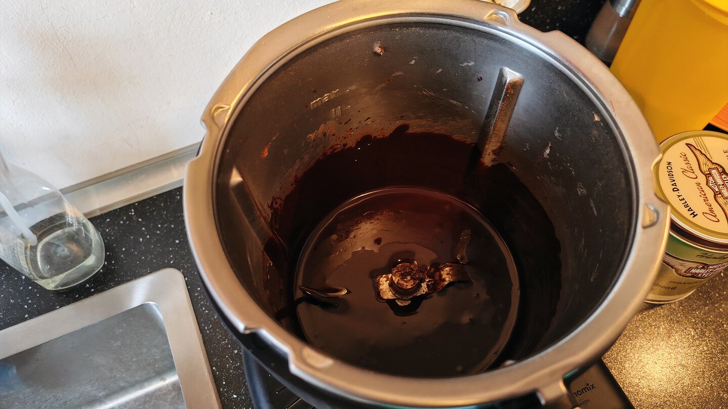 Hinzu kommen clevere Kleinigkeiten wie das bereits genannte Lichtwarnsignal oder das automatische Abhaken von Zutaten. Im nachstehenden Clip seht ihr, wie die Software 200 Gramm Zucker automatisch abhakt, sobald sie sich im Topf befinden. Ach ja, das, was ihr im Hintergrund hört, ist nicht der Thermi, sondern meine Spülmaschine. Nicht irritieren lassen.