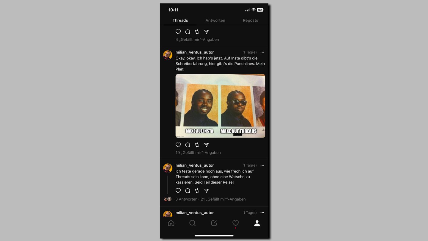 Weil ich auf Threads salopp gesagt auch mal die Hose runterlassen kann. Ich muss keine Posts vorproduzieren oder Bildchen basteln und spreche trotzdem meine Zielgruppe an.