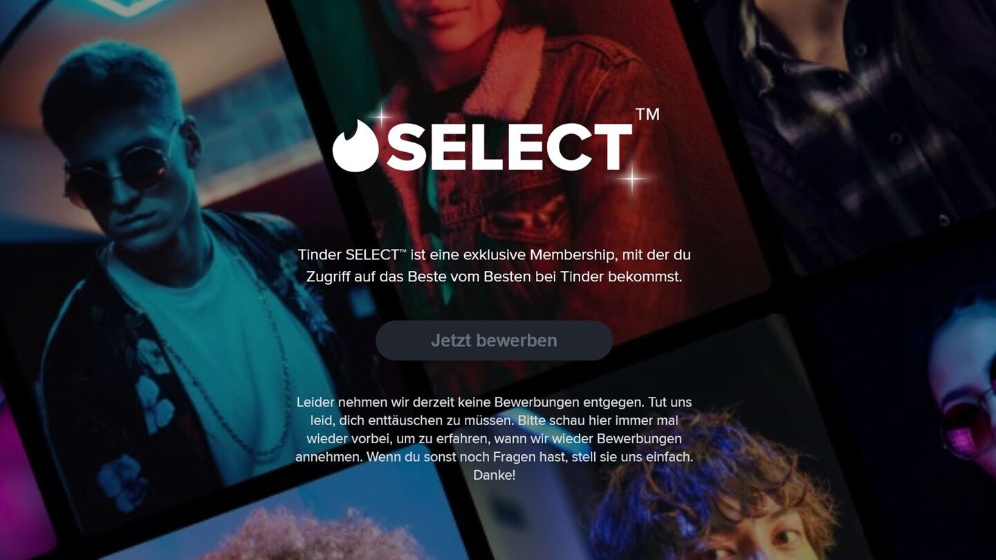- Das Wissen, zu den weniger als ein Prozent zu gehören, die Tinder Select nutzen dürfen