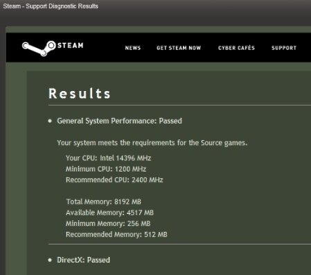 Steam mit Diagnose-Test starten