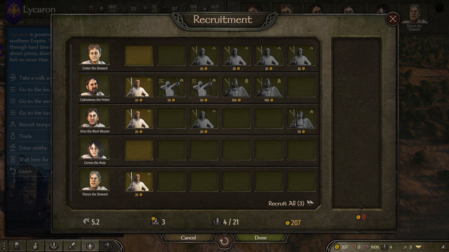 Militär: Wenn ihr verstärkt auf Krieg und Kampf setzt, solltet ihr entweder als Vlandian beginnen oder in der Fraktion des Empire. Die Truppen eines Vlandian sammeln 20 Prozent mehr Erfahrung und das Empire ist super darin, Belagerungsgeräte zu reparieren.
